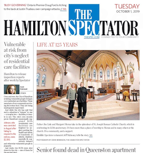 The Hamilton Spectator (est. 1846) is published by Metroland Media Group, a division of Torstar. Wilson’s column also appears in newspapers including the Guelph Mercury Tribune, the St. Catharines Standard, and the Waterloo Record.