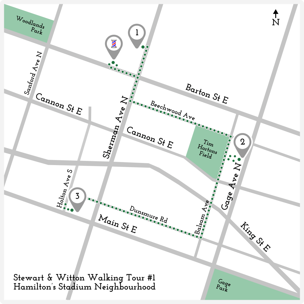 With thanks to the Playhouse Cinema; Local History & Archives, Hamilton Public Library; Martinus Geleynse, Sotheby’s International Realty Canada; The Hamilton Spectator; Naomi Bower; and the Friends of St. Giles. Stewart & Witton 150 logo, map, and website design by Naomi Bower.