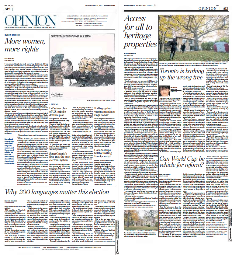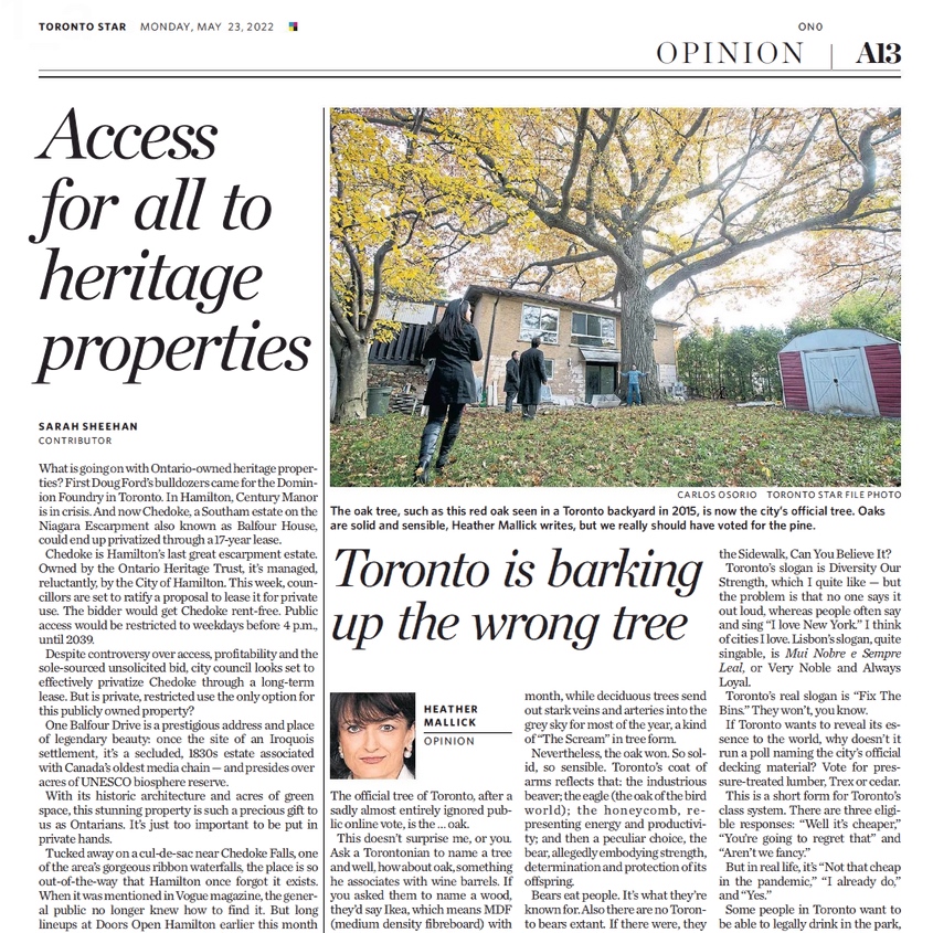 Star print edition: “Access for all to heritage properties” (May 23, 2022, A13) | online: “Everyone deserves access to our Ontario Heritage Trust properties. Let’s keep Chedoke public”